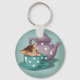 Tábua adorável de Kitten tirando uma soneca num teacup de bolinhas azul, pintada pela artista Maryline Cazenave.
