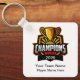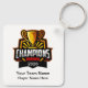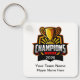 Cool modern bulk championship team league custom keychains created with a champions trophy emblem with text you can personalize to suit your team name, league name or players.