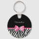 Um chaveiro de padrão de impressão zebra preto-e-branco com um arco de fita rosa giro embrulhado como um presente. Personalize adicionando seu nome. Presente perfeito para uma menina adolescente!