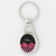 Sua adolescente se sentirá imersa no luxo feminino com este designer chic, rosa e preto, tipo zebra, imprimindo chaveiro de metal oval com uma fita cintilante de sequência amarrada em um arco luxo. Personalize este design de moda de impressão de animais brilhantes e reluzentes adicionando seu nome. Imagem impressa plana, não brilho real ou fita.