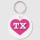 Esta cadeia-chave apresenta um coração rosa-quente vibrante contendo as letras maiúsculas e em negrito, branco, TX, a abreviação oficial do Texas, o estado de estrela solitária.