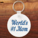 Corrente chave com a mãe número 1 do mundo em texto azul-marinho 3D. Correntes de chave redondas e quadradas disponíveis em vários tamanhos.