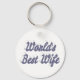 Corda chave com a melhor esposa do mundo em texto de cinza azul 3D. Correntes de chave redondas e quadradas disponíveis em vários tamanhos.