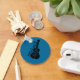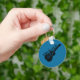 Desenho preto com texto personalizado. Chaveiros ukulele personalizados com fundo azul. Design original. Ideia de presente para amantes de ukulele.
