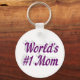 Corrente chave com a mãe número 1 do mundo em texto roxo 3D. Correntes de chave redondas e quadradas disponíveis em vários tamanhos.