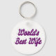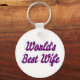 Corda chave com a melhor esposa do mundo em texto roxo 3D. Correntes de chave redondas e quadradas disponíveis em vários tamanhos.