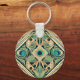 Chaveiro Textura Dourada e verde de penas abstrato de pavão