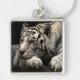 Tigre branco Grande Cheio prateado prateado prateado grande, cor de Chaveiro prateado, impressão com sangramento de cheio Silver Coloração de metal & Anel resistente a UV e à prova d'água Adicionar fotos, Trabalho de arte e texto sem ordem mínima