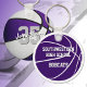 Esta equipe de basquetebol fácil de personalizar cores chaveiro apresenta a imagem realista de uma bola de basquete que tem painéis coloridos roxos e brancos alternados na frente e uma simples forma de basquete roxa no verso - personalize facilmente com o nome do jogador & número de camisa na frente e na escola ou nome do clube e nome do mascote no verso - por katz_d_zynes