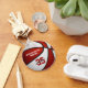 Este legal chaveiro do tema de basquete apresenta a imagem de uma bola de basquete realista com painéis coloridos alternados de vermelho e branco - facilmente personalizados com o nome da escola, o nome do mascote e o nome do jogador & número de camisa - por katz_d_zynes