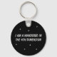 Um chaveiro preto com estrelas brancas e a frase "Sou um andarilho na 4ª dimensão". Um presente de excelente para viajantes do tempo e fãs de ficção científica.