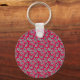 A vibrant red background is adorned with intricate pink and black paisley patterns, featuring decorative swirls and dots. The design is bold and eye-catching, creating a striking visual effect.