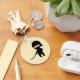 Ninja de desenho animado, bonito mas zangado, vestido de preto, está segurando uma tradicional espada japonesa de katana.