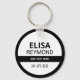 Chaveiro titular da chave com nome e data em preto-e-branco
