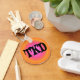 O bonitinho Chaveiro TKD Laranja e Rosa foi feito especialmente para o Artista Marcial Taekwondo. Letras TKD pretas a negrito com fundo de gradiente cor-de-rosa e laranja. Este anel-chave de artes marciais personalizado faz um presente de excelente para as artes marciais que a kwon do faz para um teste de promoção de classificação de cinta.