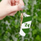 Este chaveiro de vôlei apresenta a imagem abstratamente sobredimensionada de um vôlei verde e branco na frente, sobre a qual você pode personalizar o ano (ou o número de camisa do atleta) - no verso, o nome do treinador (ou atleta) sobrepõe-se a um vôlei branco básico de tamanho semelhante - de katz_d_zynes