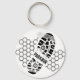 Chaveiro de treinamento de pacotes com área de ocupação e fundo de blocos geométricos.