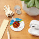 Personalize acrescentando seu nome a este padrão floral azul e branco de tendência com uma faixa verde e uma joaninha vermelha fofa.