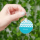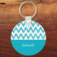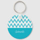 Uma turquesa de tendência e um chaveiro branco com um padrão de lápis cor desenhado por uma mão girada. Personalize este design de zigzag azul moderno e na moda aqua adicionando seu nome.