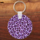 Impressão de pele de leopardo vibrante e divertida. A foto mostra a textura que a faz parecer com pelo macio ou tecido. A cor é roxa.