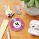Um chaveiro com um design psíquico legal. Cor de rosa, laranja e pistas azuis a girar. Vírus hippie retrô.