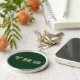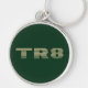 Logotipo TR8 triunfo em pele de fivela em fundo verde profundo.