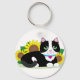 Tuxedo gato preto e branco deitado numa cama de girassóis