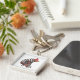 Características deste design uma ilustração da aguarela de um urso em uma bicicleta que veste uma camisola listrada e um chapéu vermelho.