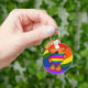 Corda-chave/anel-chave de um pequeno ursinho segurando um coração gigante do orgulho arco-íris