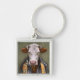 Esta design apresenta um retrato de uma vaca numa jaqueta de couro e um cachecol.