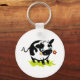 Uma vaca branca e negra adorável com uma flor na boca. Esta design parece realmente eficaz nestes Chaveiro