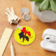 Um par de aves digitalmente desenhadas em cores preto e vermelho em frente a um fundo amarelo.