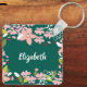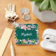 Um fundo verde escuro dispara as flores rosa ilustradas e marrom com folhas brancas e verdes. Um presente perfeito para uma senhora especial de qualquer idade!