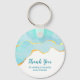 Um partido favorece a cadeia de chaves com um design de verão sereno. Turquesa / aqua imagem aqua verde aquosa com uma borda de ouro ondulada. Elegante e adorável.