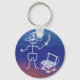 Um belo desenho de um homem-pau pirata. Pintura aquosa em chaveiros personalizados laranja, roxo e azul. Ideia para adultos e crianças.