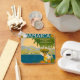 Viagens vintage de poster para a Jamaica, a joia dos trópicos, mostrando uma mulher em pé diante de um corpo de carregando d'água uma cesta de fruta em sua cabeça. Ao fundo, montanhas e uma vila. por volta de 1910.