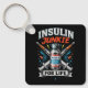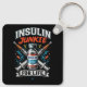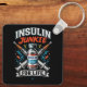 Um gráfico ousado e arrojado com seringas cruzadas e um frasco de insulina com raios, celebrando a vida diabética com humor desafiante.
