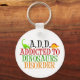 A.D.D. tem um novo significado com esta engraçada chaveiro de dinossauros: Viciado em Dinossauros! Mostra um Apatossauro (brontosauro) e um estegossauro.