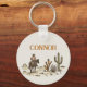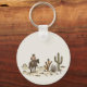 Vintage Brown Beige Western Cowboy Key Ring Western Cowboy chamado anel chave ocidental apresentando uma imagem de estilo vintage com cowboy e cacto num deserto ocidental sobre um fundo bege.