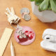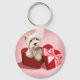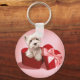 Cãozinho de westie bonito em caixa vermelha em forma de coração e fundo cor-de-rosa nublado, pintado pela artista Maryline Cazenave.