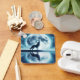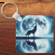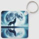 Um lobo ao lado de um lago uivando na lua de cheio, seu reflexo visto na água, por martinspixs.