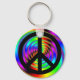 Arte fractal colorida com arco-íris colorida com um símbolo negro de paz.