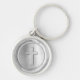 Monograma do selo de cera falsa feito à mão, em chaveiro prata - Cruz - Prata