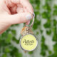 Mostre o seu lado favorito e o amor pelos livros da Jane Austen com este chaveiro de livro com a palavra "Austenite" em na moda com gráfico floral contra fundo amarelo. *Observe que a Marca d'água do Zazzle que aparece na visualização de zoom NÃO aparecerá no produto impresso final. © Bookish e Maravilha