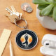 Moderno Yoga Malhação Studio / Instrutor de Meditação / Treinador Pessoal / Treinador de Vida / Healer / Mestre de Reiki / Modelo de Chaveiro de Massagem - Meditação de Ioga Moderna / Pose de Árvore (Vrksansana) Com Lua Completa sobre Cor Azul Escuro.