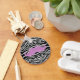 Uma zebra preta e branca com bigode de cor rosa-rosa-menina.Um design retrô legal com bigode engraçado geek 80 no padrão animal. A ideia perfeita de presente de humor para ela ou qualquer pessoa