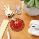 Este belo chaveiro de botão, especificamente para o ano dos ovinos (cabra) e nasceres em 1931, 1943, 1955, 1967, 1979, 1991, 2003, 2015, é criado em vermelho e ouro tradicionais e apresenta um galho de ouro Ovelhas com um pano de fundo colorido de fogos de artifício adornado com o caracter chinês para "ano dos ovinos" e uma elegante fronteira geométrica. Faz um presente único de Ano Novo ou aniversário. Procure ID542 para ver outros símbolos de zodiac e produtos adicionais com este design.