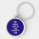Com base no original Keep Calm e... poster este creme e este Chaveiro azul Keep Calm and Party On apresenta uma fonte personalizada que corresponde ao original.