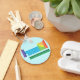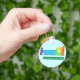 Chaveiro com mesa periódica dos elementos, com cada grupo de elementos marcado em cores arco-íris.