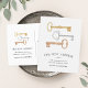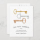 Cartões-postais de anúncio de mudança encantadores e elegantes deixam amigos e familiares sabendo sobre sua nova casa doce lar! O design apresenta um trio de chaves antigas em aquarela dourada, prateada e cobriza, com "nosso novo endereço" abaixo em tipografia de bloco elegante. Use os campos do modelo para adicionar seu novo endereço e nome(s). As informações se repetem no verso com espaço para o endereçamento do destinatário.